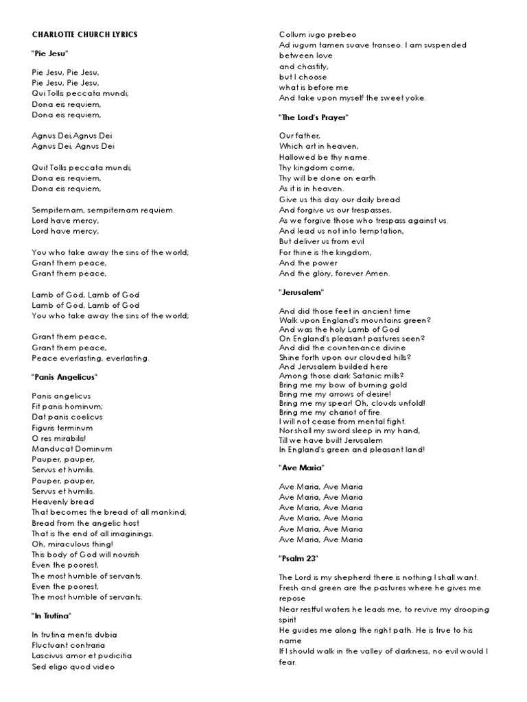 Charlotte Church Lyrics Joy To The World Lord S Prayer